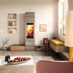perfekt in Szene. Mit einem Speichervolumen von bis zu 230 kg kann die Wärme lange ge-